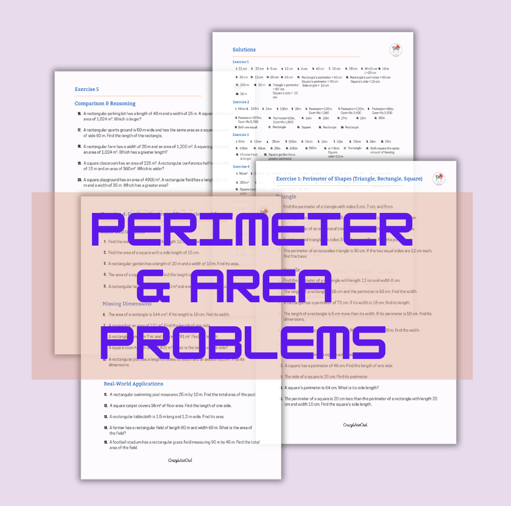 Mastering the concepts of perimeter and area is a key step in a child’s mathematical journey. This carefully designed worksheet bundle helps students practice, apply, and solidify their understanding of these essential geometry skills through real-world word problems and step-by-step solutions.